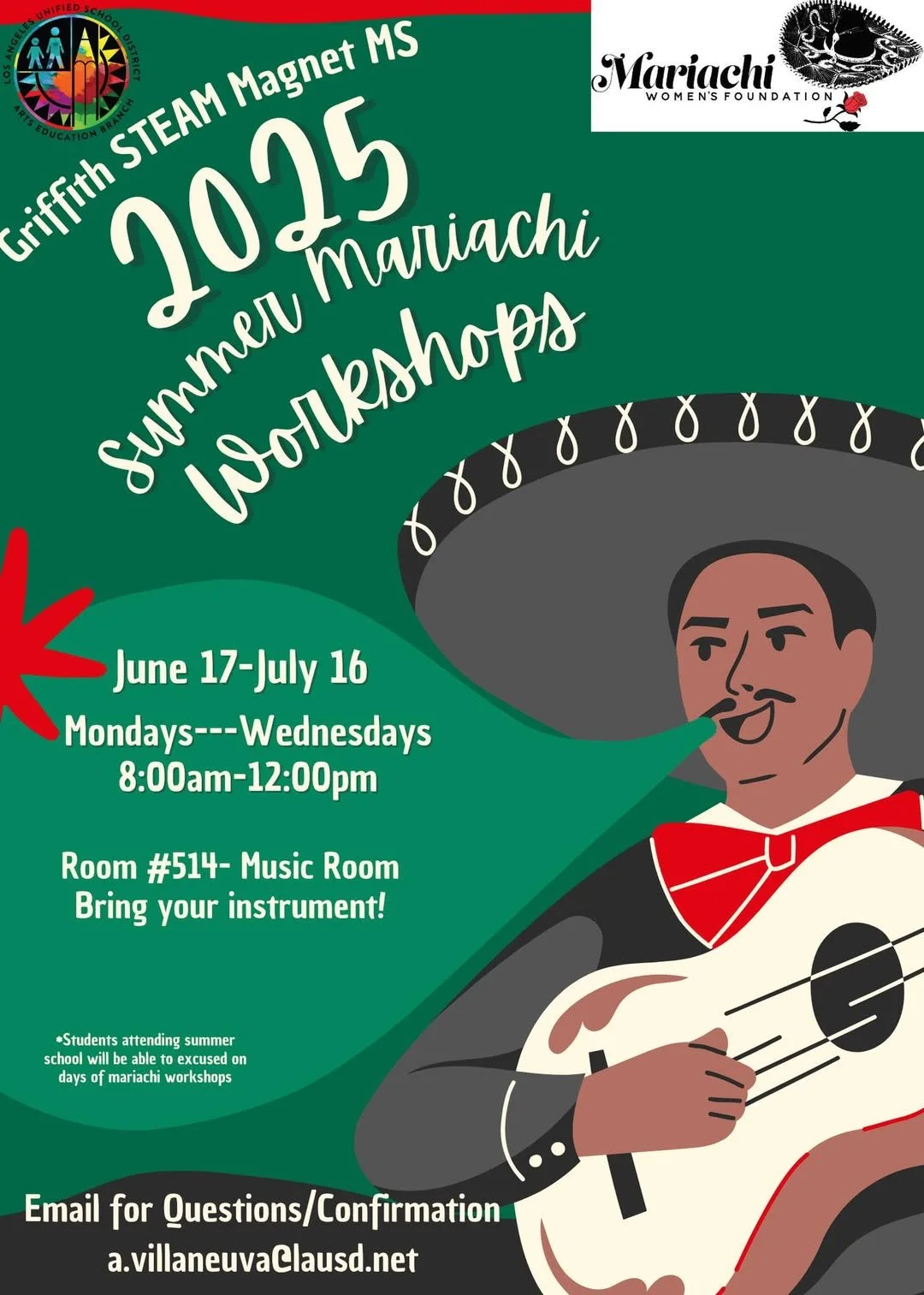 Griffith STEAM Magnet MS 2025 Summer Mariachi Workshops